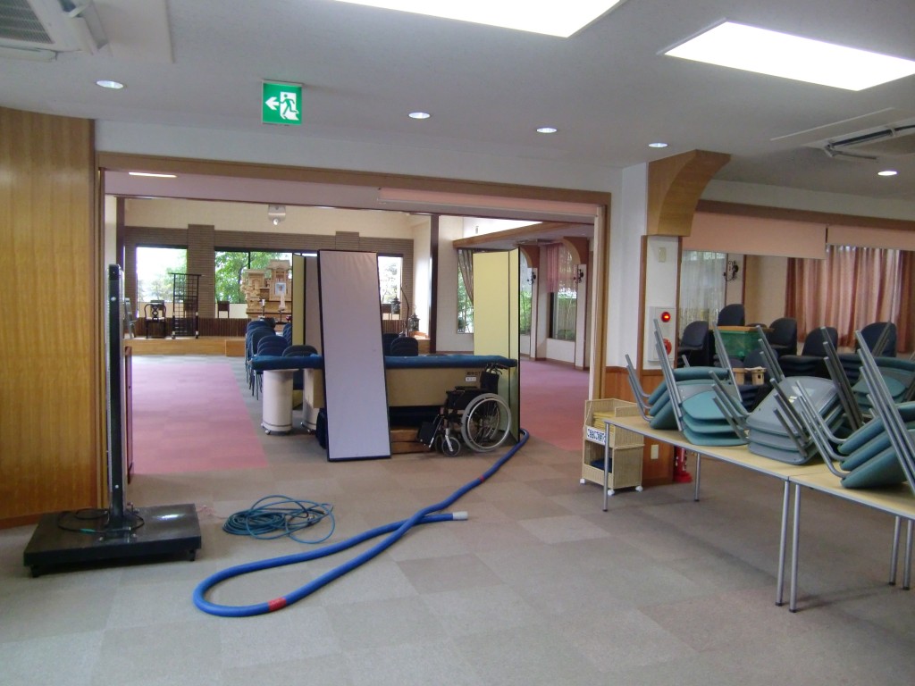 まずは、会館内の清掃作業です。